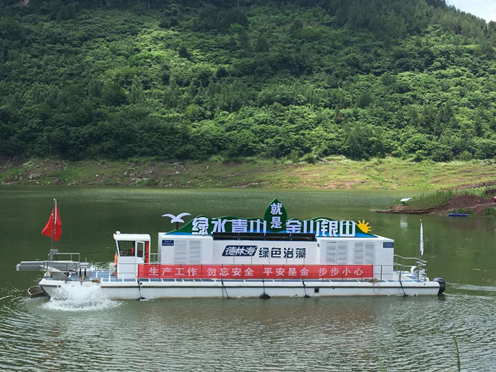 公司研發的加壓控藻船,以玻璃鋼船體為平臺,配置藍藻打撈、壓力控藻和曝氣裝置...
